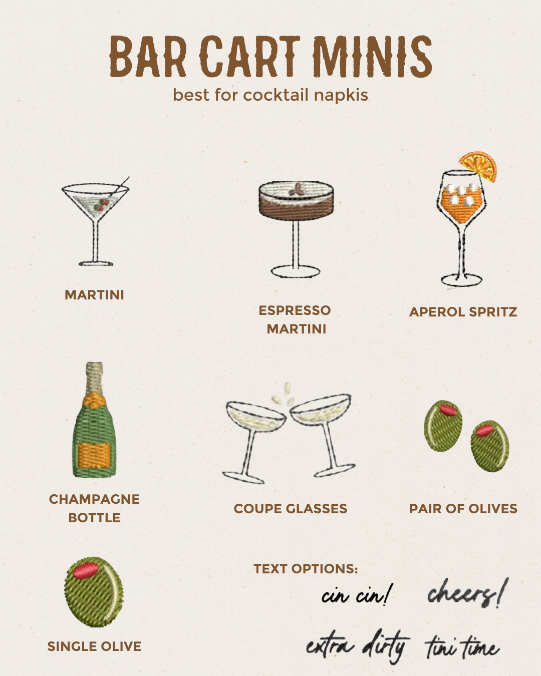 Bar Cart Embroidered Cocktail Napkins