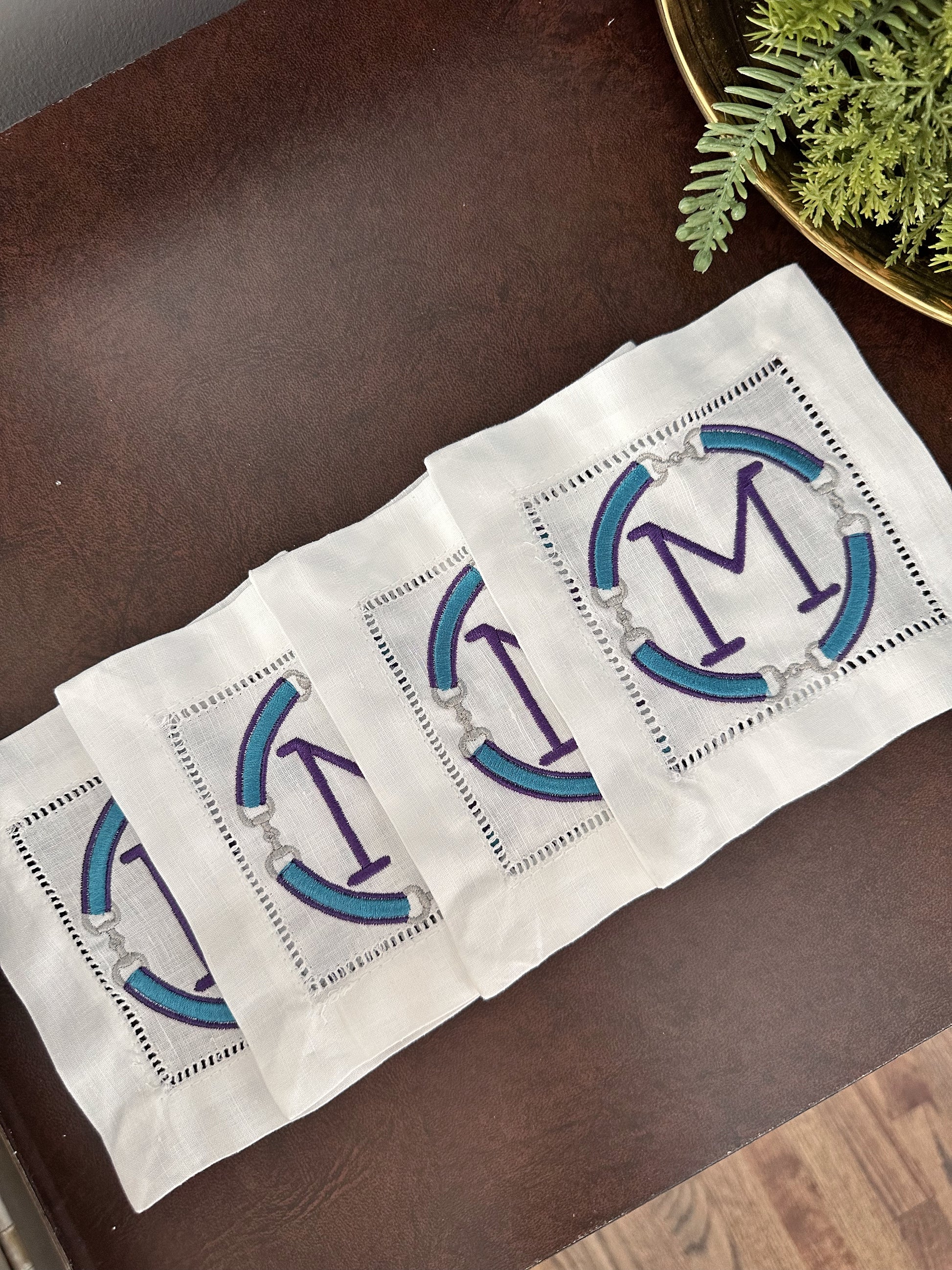 Embroidered Equestrian Snaffle Bit Linen Cocktail Napkins